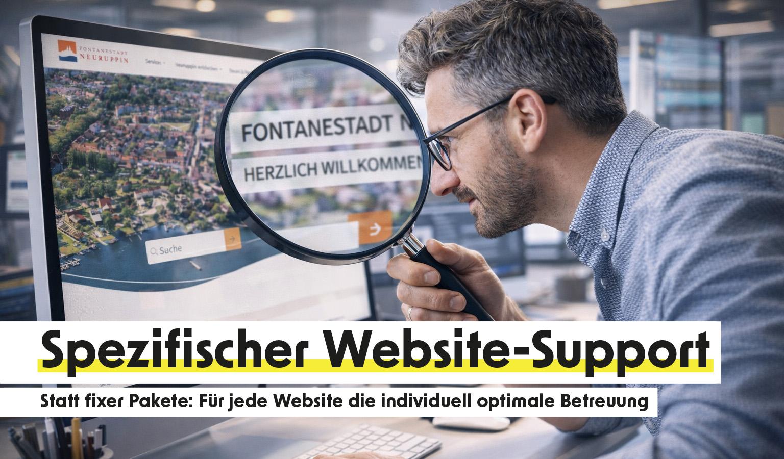 Interesse an einer Support-Lösung, die wirklich zu Ihrer neuen, zu relaunchenden oder aktuell und auch weiterhin relevanten Website passt? Dann lassen Sie uns in einem kostenfreien Erstgespräch klären, was für ein spezifischer Support für Sie sinnvoll ist – auf Zuruf, als (individuell zu definierendes) Paket oder hybrid. Jetzt Termin vereinbaren.